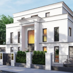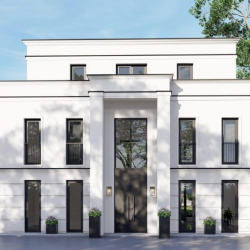 durch ein oppulentes Eingangsportal gestaltet.Das Bauträgerkonzept